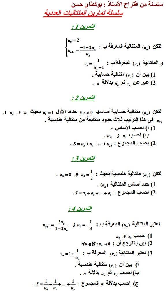 سلسلة تمارين المتتاليات العددية