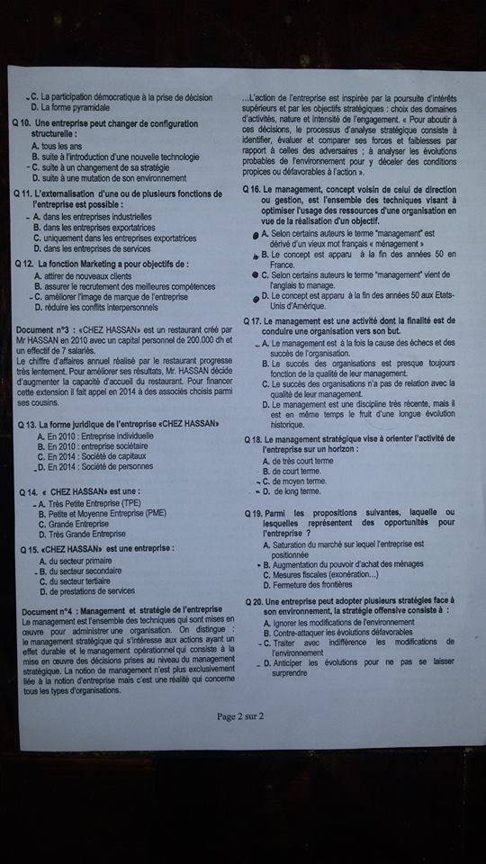 - الشعبة : العلوم الاقتصادية والتدبير.