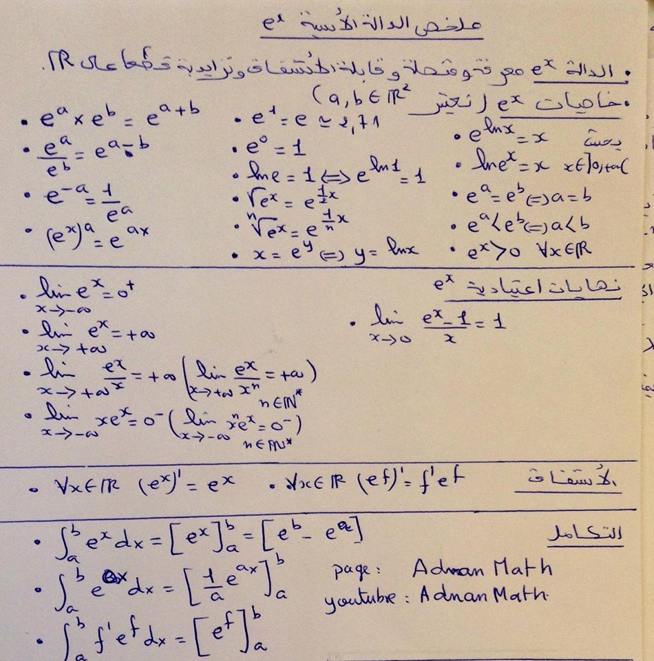 جميع العلاقات والنهايات الضرورية بدرس الدالة الاسية